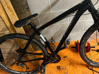 Used Has got rockshox recons 120mm travel with remote lockout, new grips, pedals, seat, no front deralier. Has a new cassette, front disk brake. Small shifting issues can be fixed by tuning deralier, freshly cleaned with muck off products, well looked after. Forks are only a few months old had service not long ago. Also brakes need bleeding other than that hike is in perfect condition and is safe to ride.
