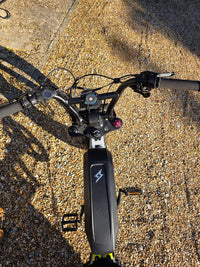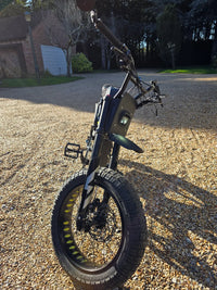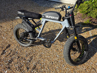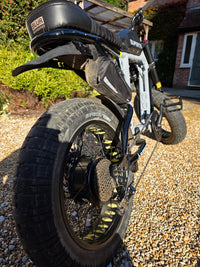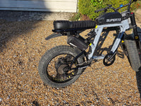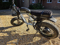 The 20-inch fat tyres and flat handlebar add to the cafe racer style, making this e-bike a stylish and practical choice for urban or off-road use.