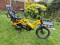Used TERN GSD S00 GEN 2 500WH - OVER £6,500 NEW - 1728 MILES - TERN CLUBHOUSE & STORMBOX Tern GSD S00 Gen 2 with slightly larger 500wh battery in great condition. Purchased brand new in September 2024, with transferable 10 year warranty, this has done 2781 km / 1728 miles. It comes in a full package suitable for carrying two children, with ample additional space on the large front carrier. Total value when purchased new was £6,530. ACCESSORIES - Tern Clubhouse Gen 3 - Tern Storm Box and cover - Tern seat pad, back rest and seat belt - Tern Sidekick Wide Decks - Tern Lockstand extensions - Tern Transporteur Rack Front - Urban Iki Child seat CONDITION - Very clean overall condition - Some paint chips around battery - No structural damage - Running smoothly - Transferable 10 year warrantyUpgrades: