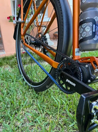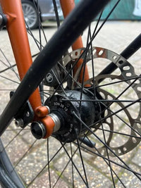 Used The Tout Terrain is the "Land Rover" of touring bikes. This is expedition-grade bicycle will take you anywhere. It has a dynamo for powering the lights or your electronics, a 12 gear Pinion Gear Box with a Gates belt drive, and an integrated rear rack. With the 29" wheels it rides like a dream. Having ridden it on my first tour I have realized this is more bike than I need. Here is an opportunity to own a high-level touring bike at a nice discount and not having to wait for production.Upgrades: