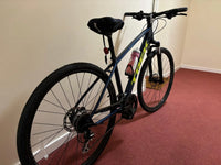 Used The Trek Dual Sport 2 2021 is a go-anywhere hybrid bike that performs on a variety of surfaces. It's efficient on the road, stable on rougher terrain like gravel paths and comfortable wherever you ride it. A suspension fork, all-terrain tyres and hydraulic disc brakes make Dual Sport 2 the smart choice for riders who want to explore beyond smooth city streets. The Dual Sport 2 2021 has a Suntour NEX fork with a hydraulic lockout feature to ensure you're always riding efficiently: close it for smooth Tarmac, open it up on rougher trails. It also comes fitted with all-terrain tyres that are grippy yet fast-rolling and is easy to accessorise with racks, a kickstand, mudguards, lights and more! The DuoTrap S compatibility makes it easy to wirelessly track your rides, so you can set goals and watch yourself reach them and internal cable routing extends the life of your cables and adds to the bike's sleek lookUpgrades: