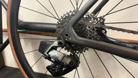 Used * Trek Emonda SL6 Rival eTap AXS Carbon Road bike which was originally bought in 2023 - with very low use of around 1000 miles at most. * 54cm frame size - generally suit those between 5ft6 and 5ft9 * Colour is ‘Trek Black / Prismatic Grey’ - a gorgeous colour, think black speckled…frame is in immaculate condition. There are a couple of small scratches on the front chain ring due to a chain drop on its first outing. * SRAM Rival eTap AXS electronic wireless 2x12 speed groupset, with SRAM Rival hydraulic brakes and a Quarq DUB power meter. Fitted with a 10/36 cassette, 48/35 front chainrings. * Bontrager Aeolus Elite 35 Carbon Wheelset, tubless compatible and fitted with Schwalbe 30mm tyres (never ridden) * Bontrager finishing - aside form the handlebar, fitted with a Deda 40cm bar (the original Bontrager 42csm bar can be included) - along with Blendr compatible stem * Bontrager Carbon seat post * All batteries, chargers, and battery caps included A gorgeous bike, one that I simply do not ride enough and has spent most of its time in the garage.Upgrades: