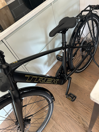 Used Really reluctantly letting this go. I bought it 6 months ago and rode it just once. Everything’s in new condition. This isn’t a heavy, clunky e-bike, it’s super lightweight so it handles like a normal hybrid until you flick the pedal-assist on. The 250W Hyena hub motor gives a smooth, natural boost, and the 250Wh internal battery gives you up to ~35 miles of range (depending on how you ride). It comes fully equipped: integrated front + rear lights powered by the battery, mudguards, a rear rack, and a kickstand so it is perfect for commuting or running errands. Bike connects via Bluetooth to the Hyena app, so you can track ride data if you like. I’m gutted to sell it. just didn’t end up using it the way I thought I would. But it’s a brilliant bike for anyone wanting an easy, practical e-bike for commuting or roaming about. All accessories included such as: Gold Standard D lock Bell Drink holderUpgrades: