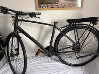 Used Is a brand new bike. I bought it during Covid time but I have never used it…The last picture shows the bike without the sitting cause I storage it outside and just to stop the bike from being stolen, but I have it in a good condition Lightweight aluminium frame • Carbon fork • Hydraulic disc brakes • Size Large (fits approx. 5’10”–6’2”) • Never used – like new conditionUpgrades: