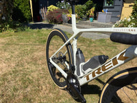 Used This is a brand-new, never-ridden 2025 Trek Madone SLR 7 Gen 8 in size Medium (fits ~52–54 cm). The bike is completely stock from the factory — no modifications, upgrades, or mileage. It’s ready for high-performance road riding straight out of the box. Key Features: Frame: 800 Series OCLV Carbon, Gen 8 aero design w/ IsoFlow for compliance and weight savings Groupset: SRAM Force eTap AXS – wireless 12-speed electronic shifting Brakes: SRAM Force eTap AXS hydraulic disc brakes Wheels: Bontrager Aeolus Pro 51 carbon wheels – tubeless ready Tires: Bontrager R3 Hard-Case Lite 700x25 Cockpit: Integrated bar/stem for clean aerodynamicsUpgrades: