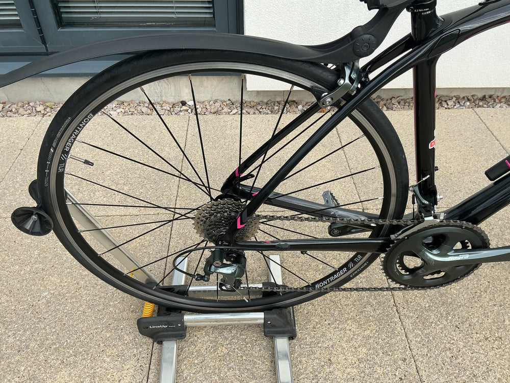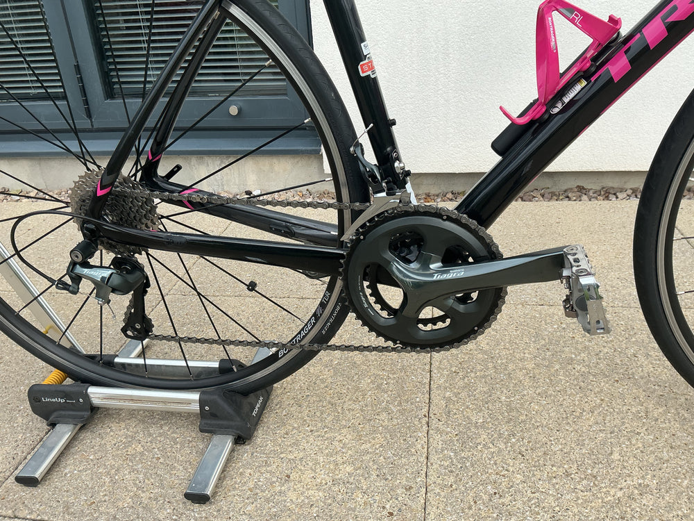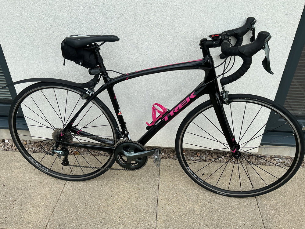 Purchased from new April 2017. Much loved road bike, a joy to ride. Well maintained hence in excellent condition. Full Trek service and multi-point inspection Jan 2018. Last serviced September 2024. Light scuff marks on crank and paint chip on frame (see photos). Great value as price includes Bontrager front/rear lights; Bontrager DuoTrap sensor+ computer; pump; bottle cage; seat post bag.