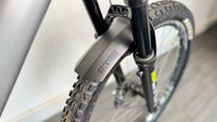 An exceptional example of the Whyte E-Lyte 150 RSX (2024) in size Large, finished in Gloss Silver / Matt UD Carbon. Purchased in March 2025, this bike with the Invisiframe protection and mudguards fitted was over £5,000 when new. It has covered just 315 miles and is in outstanding condition.