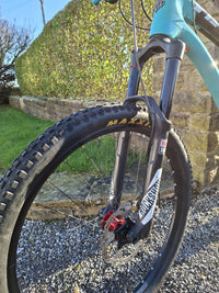 Used Brakes new pads all good shimano XT levers and calipers. Eastern haven carbon bars Hope headset Eastern haven 50mm stem Wolf tooth dropper post lever Ergon grips Hope fortus 27.5 wheels Hope pro 4 hubs Tires maxis minion DHF rears maxis aggregresor tyres Hope bottom bracket Cranks shimano XT Rear mech shimano SLX Firetrap Deity pedals. Yeti blue Dropper post Thomson elite but drops by half an inch 130mm Fox float Rear shock. does not lock out service required Large frame yeti sb5c carbon frame Rockshox pike 150mm travel Yeti switch infinity Rear suspensions Half invisiframe protectionUpgrades: